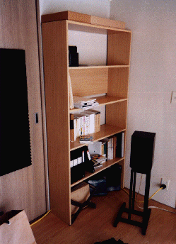 新しい部屋はシンプルでいい感じです。 でも、そもそも研究予算で購入する書籍や資料の置き場を確保するという 目的で部屋を移ったのですから、そのための本棚などを整備しなければなりません。 で、家具屋などを物色したりいろいろと調べたのですが、どれもこれも インチキ合板のペナペナ本棚だったり、やたらと高かったり、 A4の4穴ファイルが立てられなかったりと満足できるものが ありません。あと部屋の壁面にぴったり揃えたいという欲求もありました。 そこでやむなく家具職人となって自分で書棚をつくることにしました。 近所のDIY店で181cm X 30cmとか181cm X 35cmというような 規格品の化粧シナ合板を購入して、図面のとおりカットしてもらい、 配達してもらいました。 本棚3台分の中身まで詰まった合板というのはすごい重さですし、場所もとります。 配達してもらったその日に全ての本棚を作り上げないと困ったことになる ことがわかりました。それで午後3時から100本近くの木捻子を手回しドライバで 打ちこんで8時までかかって3台の本棚を作りました。手の皮が一部剥けてしまいました。心の底から電動ドライバを買っておくべきだったと思いました。 それで、これが完成品です。 市販品よりしっかりしてますし、書籍や資料の 量に応じて改造が簡単です。でも写真では本がほとんど入ってませんね(笑)。